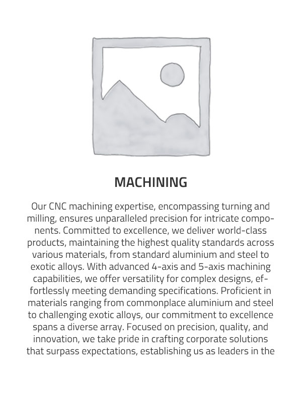 Our CNC machining expertise, encompassing turning and milling, ensures unparalleled precision for intricate components. Committed to excellence, we deliver world-class products, maintaining the highest quality standards across various materials, from standard aluminium and steel to exotic alloys. With advanced 4-axis and 5-axis machining capabilities, we offer versatility for complex designs, effortlessly meeting demanding specifications. Proficient in materials ranging from commonplace aluminium and steel to challenging exotic alloys, our commitment to excellence spans a diverse array. Focused on precision, quality, and innovation, we take pride in crafting corporate solutions that surpass expectations, establishing us as leaders in the CNC machining realm.